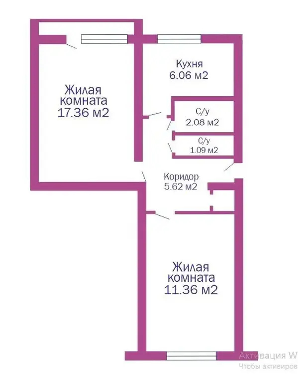 Общая площадь 44.06, жилая 28.72, кухня 6.06.