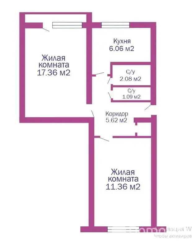 Санузел раздельный, балкон застеклен.