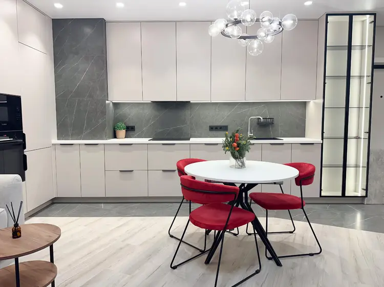 Квартира с дизайнерским ремонтом выполнена с безупречным вниманием к деталям. Интерьер выдержан в современном стиле с использованием качественных импортных материалов.