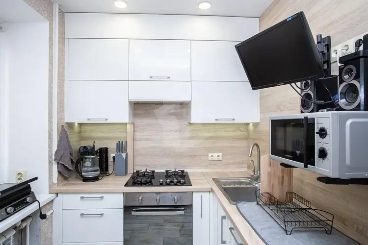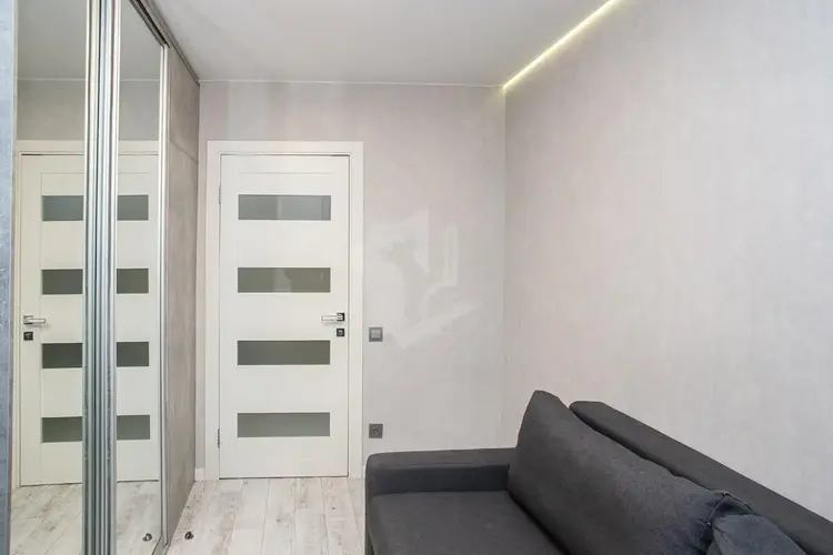 Полностью заменена вся электрика и сантехника. В комнате установлен кондиционер LG. Полы в коридоре и на кухне – плитка, духовой шкаф Ariston, варочная газовая панель Maunfeld, холодильник JG, кухня на доводчиках Blum. В санузле плитка, вся сантехника Ledeme, стиральная машина Electrolux.