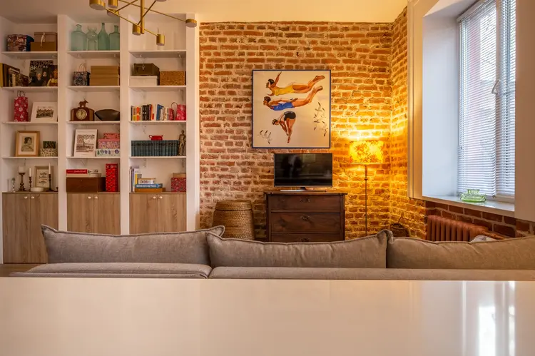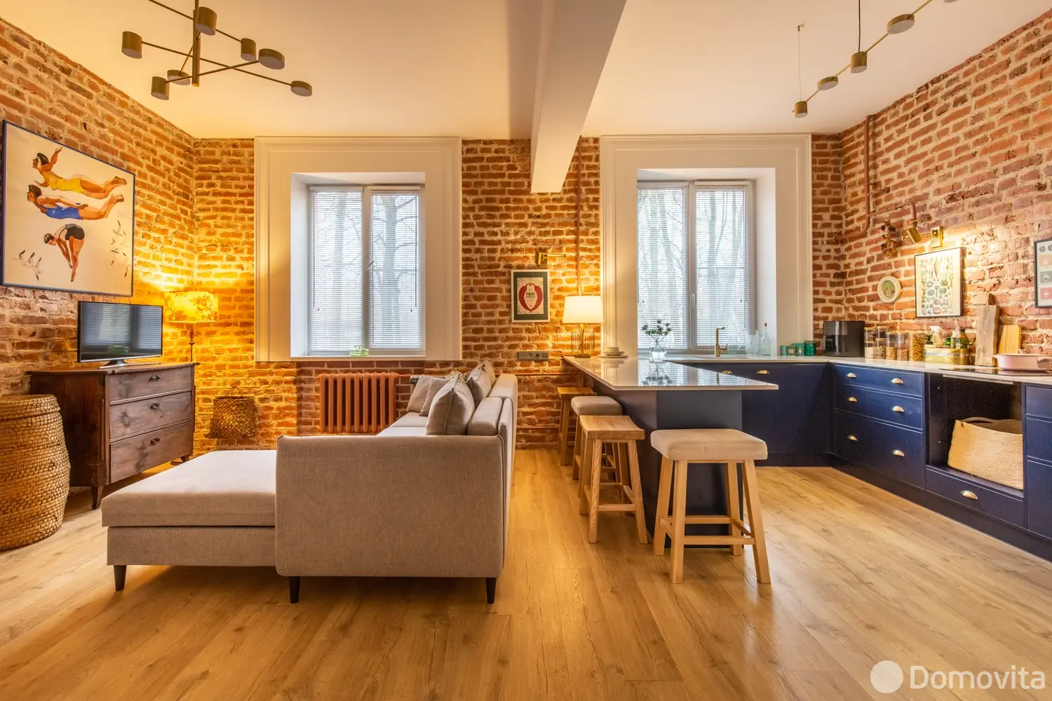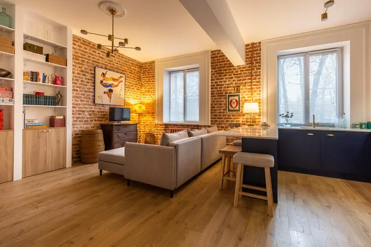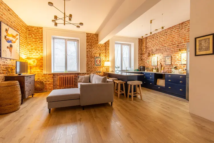 Состояние квартиры: отличный ремонт. Каждая зона продумана до мелочей. На стенах обои, на полу ламинат высокого класса. В процессе ремонта была сохранена и атмосфера прошлого времени: кирпичные стены и лепнина на потолке. Добавлено большое количество теплого освещения, которое придает квартире ещё больше уюта и атмосферности.