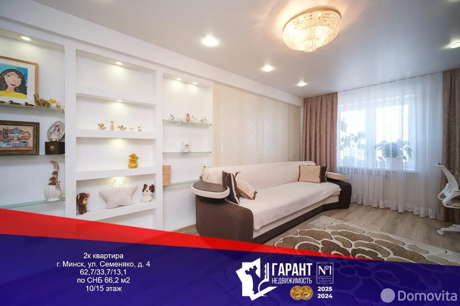Продается просторная (66м2) двухкомнатная квартира с большой (13.1м2) кухней в доме 2013 года постройки ул.Семеняко, д.4. Высокий, десятый, этаж