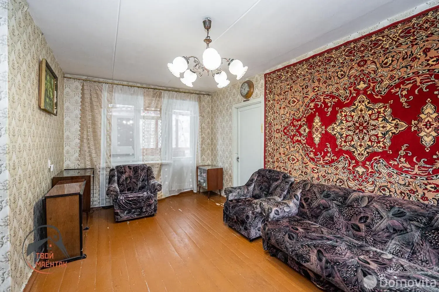 Квартира требует ремонта, однако готова к проживанию, хотя обстановка и дизайн устарели.