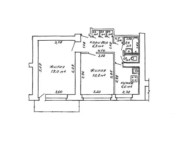 Общая площадь квартиры по СНБ – 52.34 кв.м., общая площадь – 49.8 кв.м., жилая площадь – 31,8 кв.м., высота потолков - 2.54 м.
