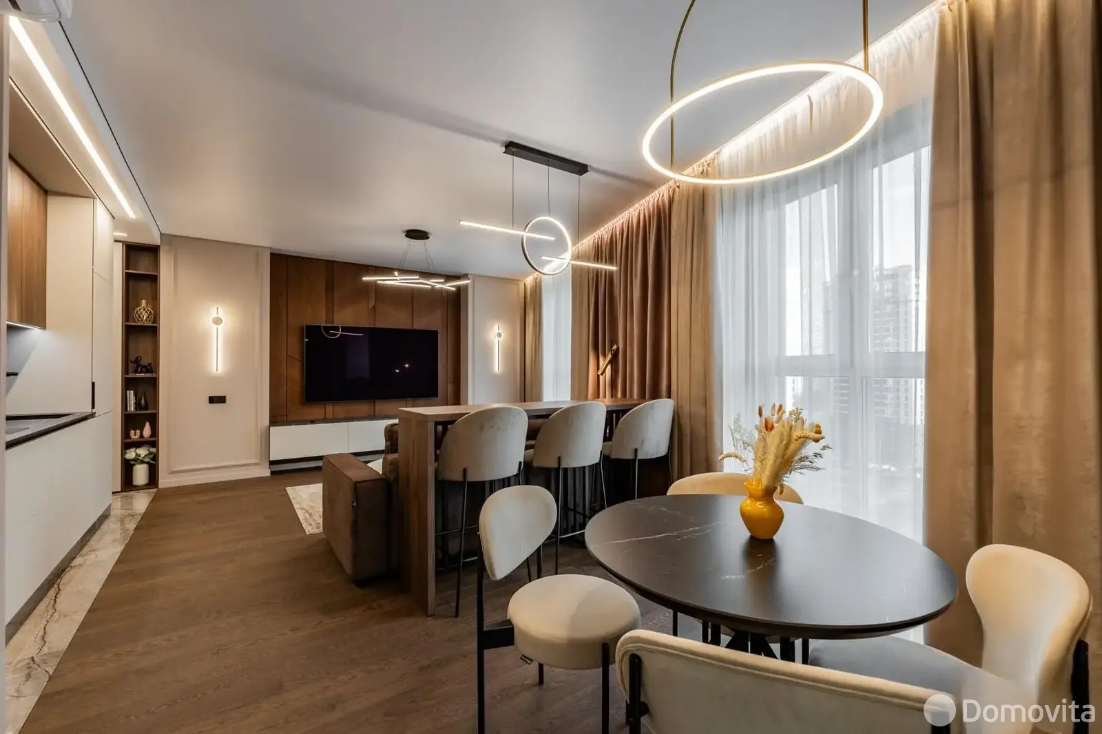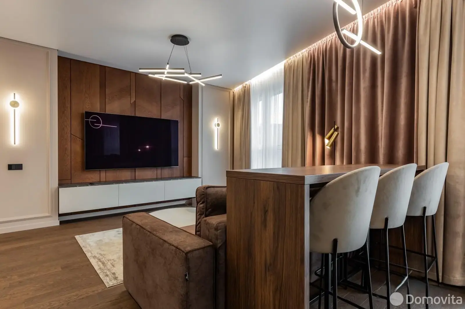 Квартира находится в престижном комплексе Minsk World, в непосредственной близости от Международного финансового центра, станции метро "Аэродромная" и торгово-развлекательного центра "Авиа Молл". Окна квартиры выходят на прекрасный вид, не упирающийся в соседние дома.
