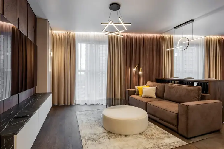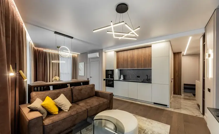 Современная планировка квартиры с просторной кухней-гостиной, объединенной в единое пространство, создает комфорт и функциональность. В квартире выполнен дизайнерский ремонт с использованием материалов высокого качества, все детали продуманы до мелочей.