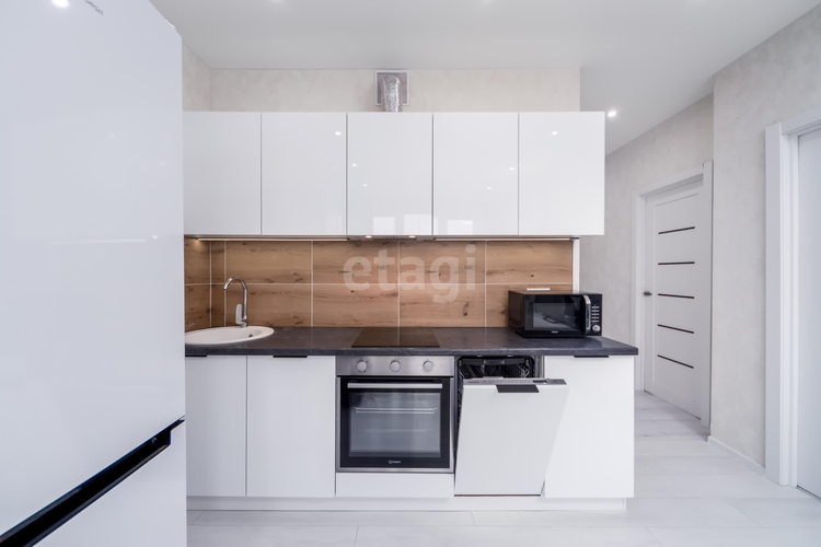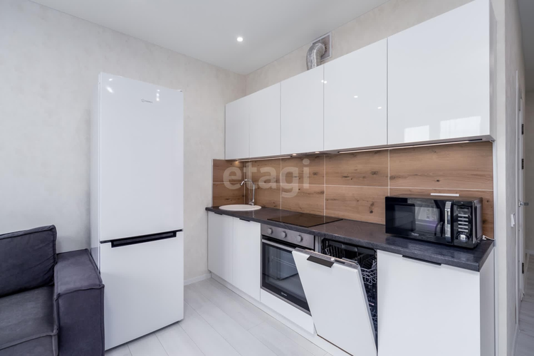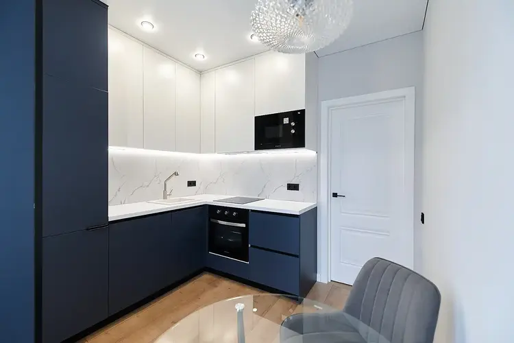 Квартира укомплектована европейской техникой Maunfeld (СВЧ печь, духовой шкаф, варочная панель).