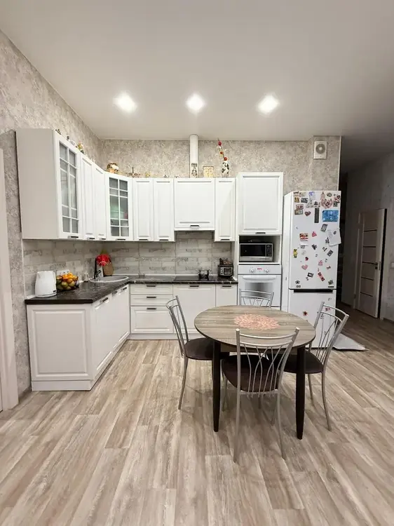 Продается шикарная 3-комнатная квартира на 4-ом этаже 10-ти этажного, каркасно-блочного дома. Год постройки 2019, общая площадь 61.8 кв.м. по СНБ.