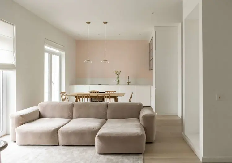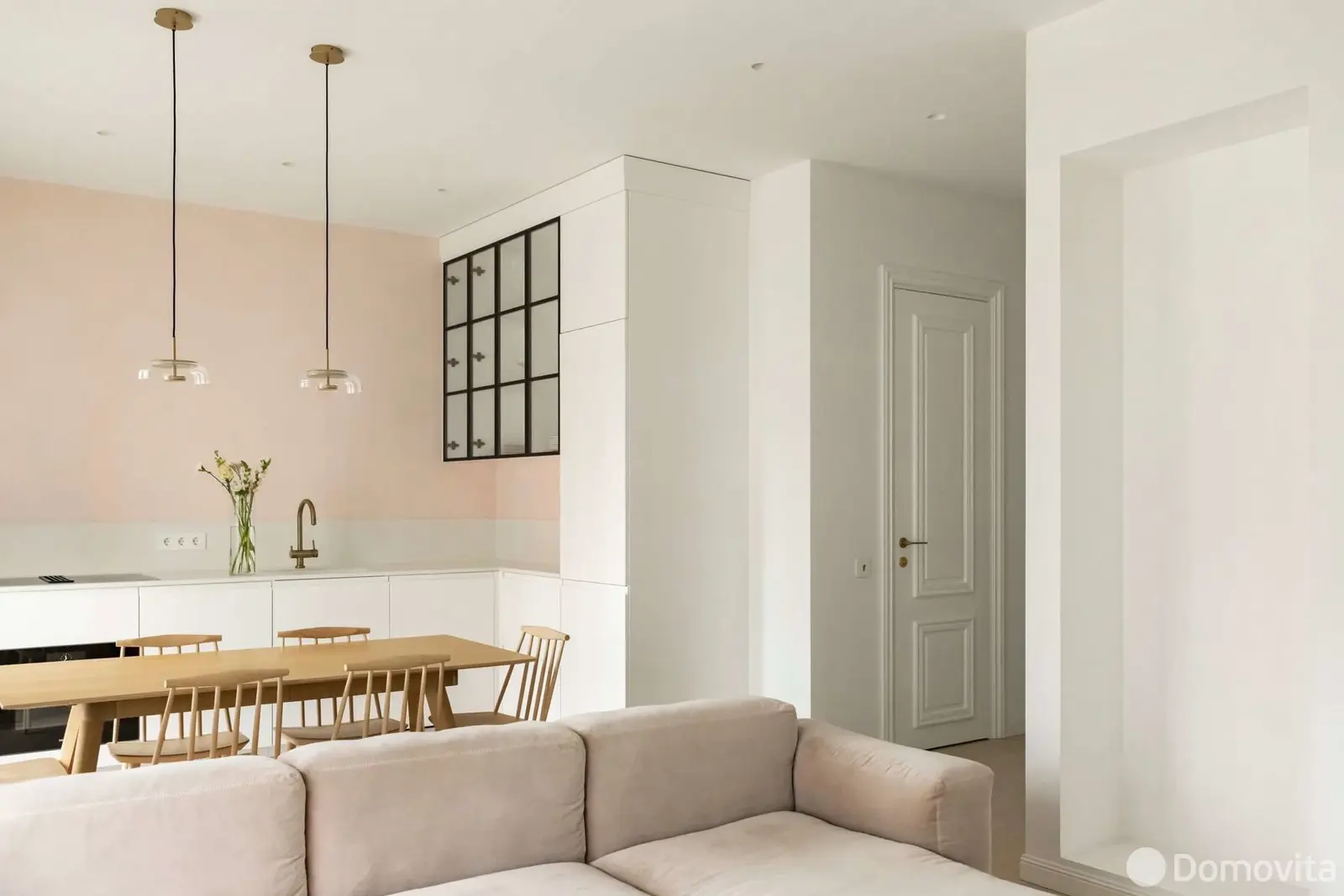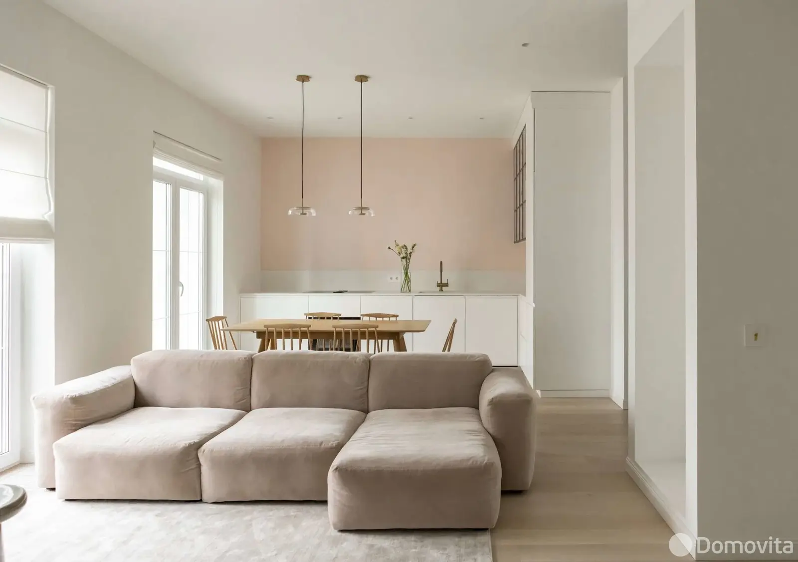 - Светлая, просторная, минималистичная квартира с акцентом на детали, продуманной планировкой.