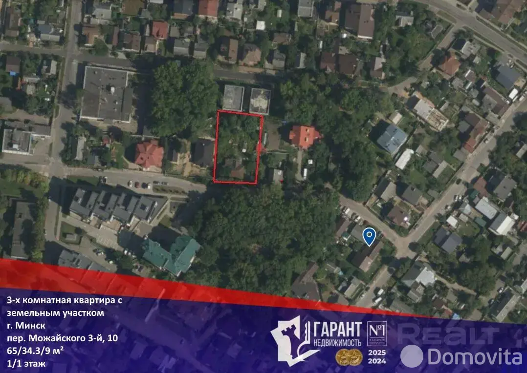 К квартире относится полностью огороженный земельный участок площадью 13,43 соток, который находится в частной собственности. Участок ровный, правильной прямоугольной формы.