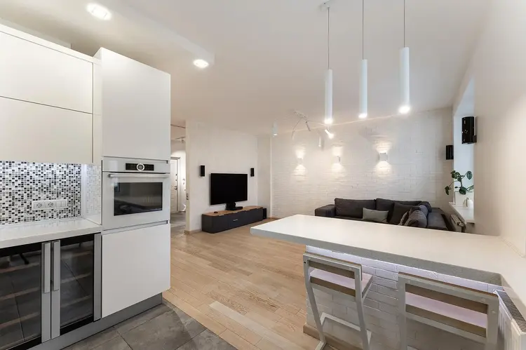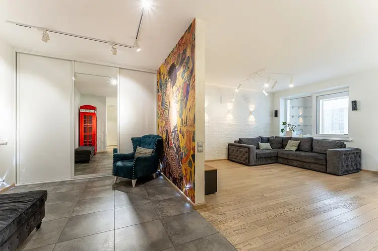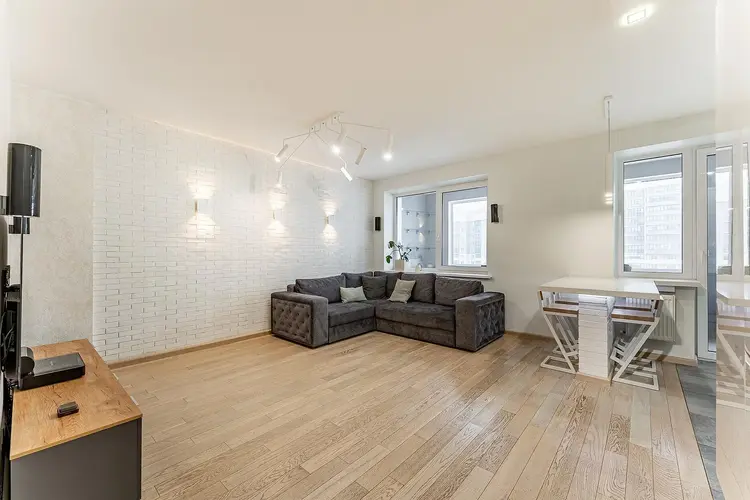 Квартира содержит все для приятного проживания людей, которые ищут современный, продуманный до мелочей дизайн без лишних перегружающих деталей.