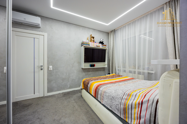 В прихожей встроенный шкаф-купе с зеркальными фасадами, в котором достаточно места для хранения. Вся мебель и отделка подобраны в едином стиле. Есть просторная гардеробная, где вы удобно будете хранить все необходимое. В квартире 4 кондиционера с отдельными блоками фирмы GREE и BALLU, что позволяет поддерживать комфортный климат в каждой комнате круглый год.
