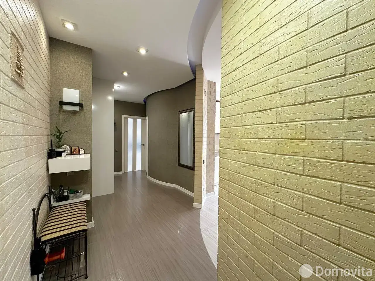 Потолки из ГКЛ с подсветкой, стены - обои, декоративная штукатурка, декоративный кирпич покрытый лаком!