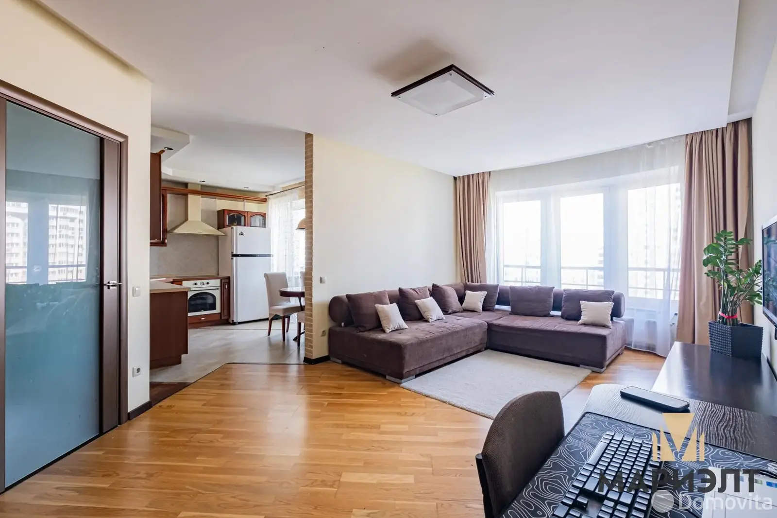 Кухня-гостиная, спальня, детская комната, гардеробная, 2 сан. узла, В квартире сделан хороший ремонт, окна выходят на обе стороны. Кухня укомплектована встроенной техникой (духовой шкаф, варочная панель,вытяжка), продумано большое количество мест для хранения. На полах-паркет и керамогранит.В квартире всегда тепло и тихо.