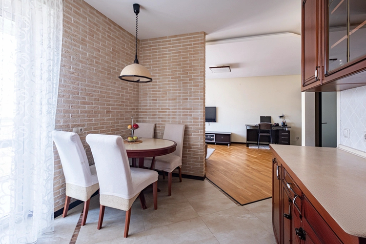 Кухня-гостиная, спальня, детская комната, гардеробная, 2 сан. узла, В квартире сделан хороший ремонт, окна выходят на обе стороны. Кухня укомплектована встроенной техникой (духовой шкаф, варочная панель,вытяжка), продумано большое количество мест для хранения. На полах-паркет и керамогранит.В квартире всегда тепло и тихо.