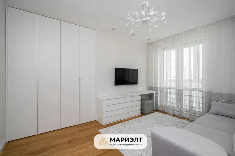 Интерьер квартиры выполнен в спокойной тёплой цветовой гамме. Отсутствие излишних деталей и элементов, наличие натуральных отделочных материалов, грамотные и удобные планировочные решения - всё это создаёт атмосферу уюта и комфорта. В отделке помещений и мебели использованы только премиальные экологически чистые, сертифицированные материалы ведущих европейских производителей, в том числе, вся бытовая техника.