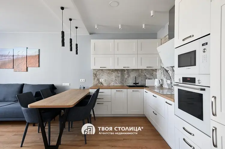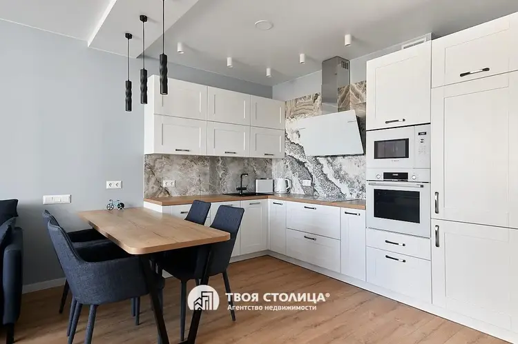 Просторная евротрёшка С ДИЗАЙНЕРСКИМ РЕМОНТОМ, МЕБЕЛЬЮ И ТЕХНИКОЙ у станции метро «Петровщина».Площадь квартиры по СНБ 70.8 м кв. Общая площадь 68.1 м кв. Высота потолка : 2.73.Материал стен: каркасно-блочный. Год постройки: 2020. Этаж 10/21. Лоджия застеклена (французское остекление).В отделке использованы высококачественные материалы, всё продумано до мелочей. Напольное покрытие: ламинат. В жилых комнатах потолки окрашены, в коридоре и кухне-гостиной натяжные потолки с подвесными и точечными осветительными приборами. Отделка стен выполнена интерьерной краской. В оконных проёмах установлены стеклопакеты с профилем из ПВХ. Оборудовано множество скрытых мест хранения. Встроенная кухонная мебель с техникой от ведущих профильных производителей: духовой шкаф, варочная панель, вытяжка, печь СВЧ, холодильник, посудомоечная машина. В санузле установлена мебель для ванной комнаты. Стирально-сушильная машина. Подключены приборы учёта воды, индивидуальные счетчики тепла, оптоволоконная связь. Установлена металлическая входная дверь. Квартира продается со всем содержимым, свободна и полностью готова к проживанию!Качественная отделка мест общего пользования. В подъезде установлены грузопассажирский и два пассажирских лифта OTIS. По периметру дома и внутри подъезда установлено видеонаблюдение. Придомовая территория без автомобилей, с ограниченным движением транспорта и с оборудованными игровыми и спортивными площадками с современным оборудованием. Гостевая парковка, закрытая велопарковка.Развитая инфраструктура района. Здесь есть всё для комфортной жизни. В непосредственной близости от дома множество детских садов, школы (одна из которых с музыкальным уклоном), гимназия № 12, детская библиотека. Дом быта, ТЦ Кирмаш, кинотеатр Берестье, многофункциональный развлекательный центр Титан, отделения банков, почта, аптеки, парикмахерские, фитнес-центры, салоны красоты, посольство Германии. Развитая торговая сеть: супермаркет Алми, Хит,. Места общественного питания: рестораны, кафе. В двух остановках от дома рынок Московский, детская и взрослая поликлиники. Удобный и быстрый выезд на 1-е транспортное кольцо и МКАД.Прямая продажаРасширенные консультации по покупке, продаже и обмену вашей недвижимости можно получить в офисе Центральном, расположенном в Бизнес-центре Kiroff по адресу Минск, улица Кирова, 8. 2 этаж.Звоните: +375-29-670-62-62Смотреть подробнее ТОП-20 ДЕШЕВЫХ КВАРТИРБАЗА ПОКУПАТЕЛЕЙ – узнайте, кто готов купить вашу квартиру прямо сейчас!КАЛЬКУЛЯТОР СТОИМОСТИ ЖИЛЬЯ – онлайн- расчет стоимости вашей квартиры!ПЕРЕЕЗЖАЕМ В НОВОСТРОЙКУ- программа обмена старого жилья на новое. 2 сделки в 1 день!ПАРТНЕР-КРЕДИТ сопровождение кредитования для покупки и обмена «под ключ»ВАШ ВАРИАНТ- проверка квартир перед покупкой и оформление сделки, если вы нашли объект самостоятельно. ООО "Твоя столица", УНП 101136973, лицензия №02240/15 от 17.02.05г.