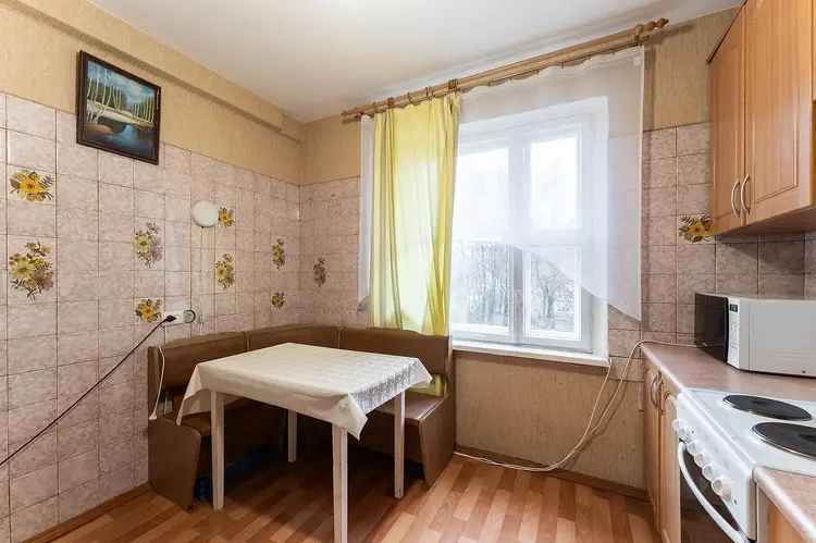 - Квартира на 11-ом этаже, сквозь окна которой вы сможете любоваться потрясающем видом на часть города и зелёный двор.
