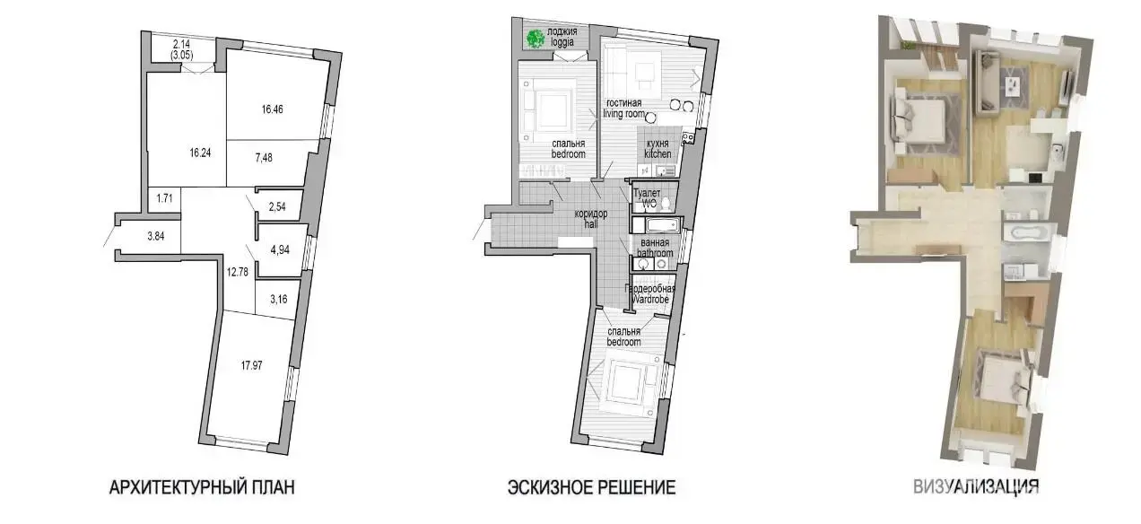 3 комнаты