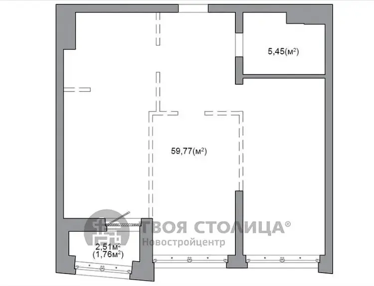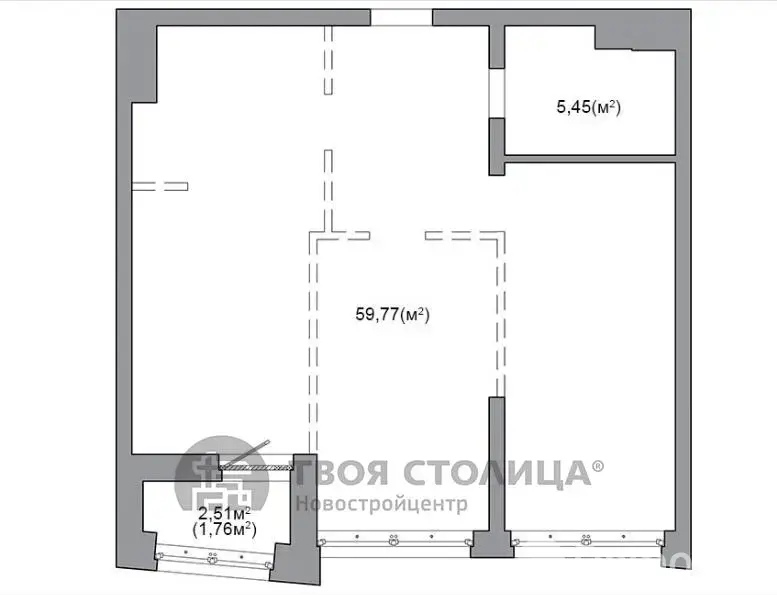 Квартира на момент ввода является однокомнатной с возможностью разделения на комнаты по индивидуальному проекту будущего собственника.