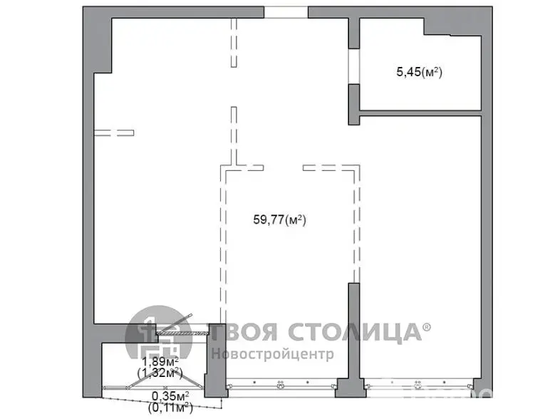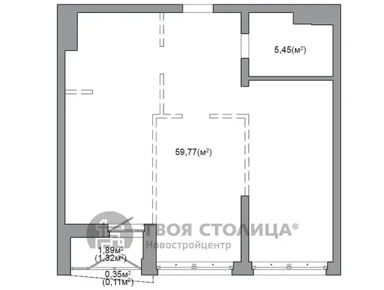 Квартира на момент ввода является однокомнатной с возможностью разделения на комнаты по индивидуальному проекту будущего собственника.