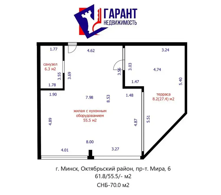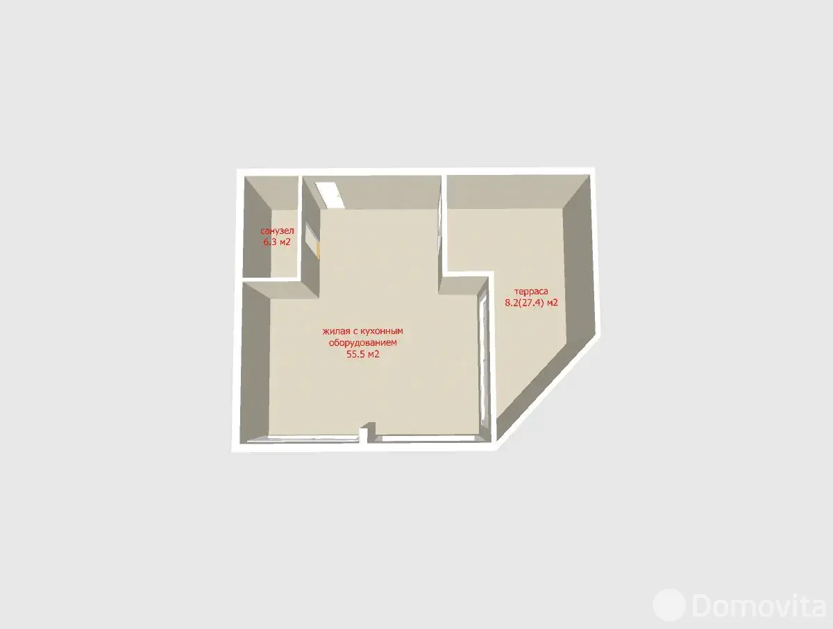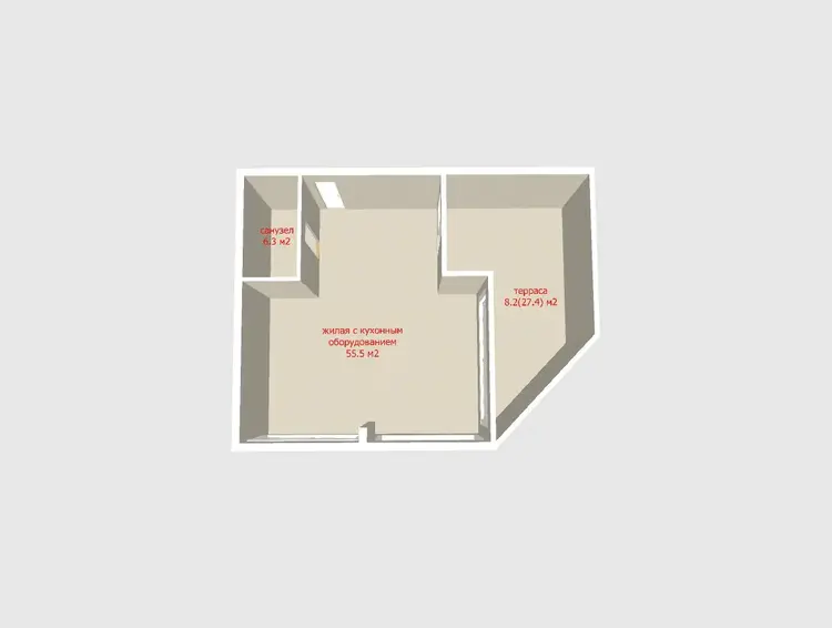 Просторная квартира с террасой, 61.8 + 27,4 м2, у метро Аэродромная