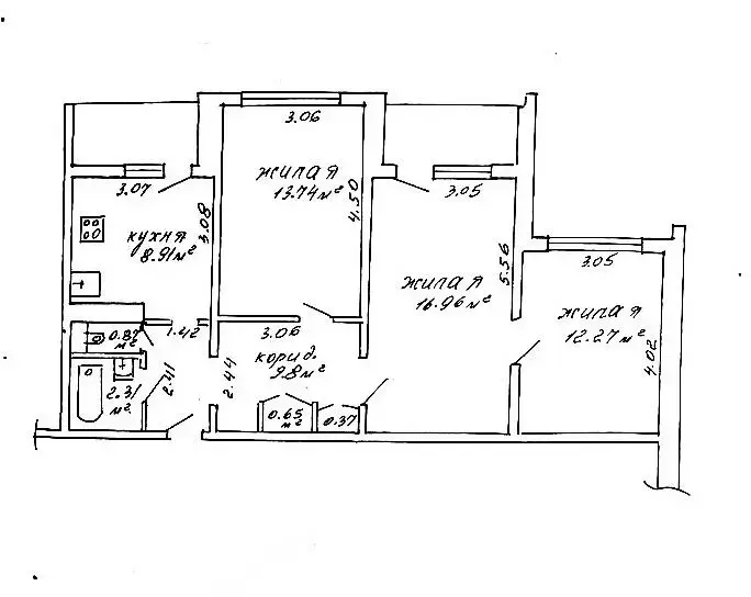 — общая площадь квартиры — 65,9 кв.м., по СНБ 69,5 кв м, 43 кв.м. — жилая зона.