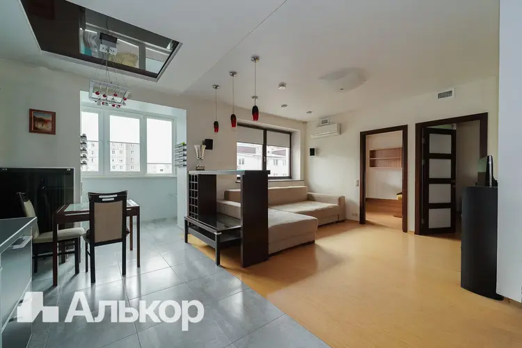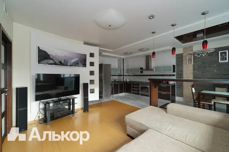 Просторная планировка с большой кухней-гостиной, гардеробной и двумя санузлами. Встроенный комплект кухонной мебели, варочная панель, духовой шкаф, вытяжка, система очистки воды. В прихожей - шкафы для хранения вещей и одежды. Пол с подогревом в кухонной зоне и прихожей, система вентиляции по всей квартире, кондиционер.