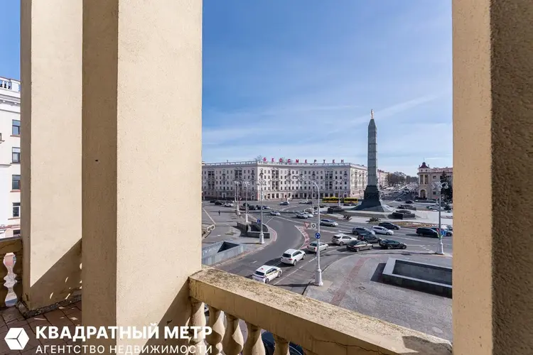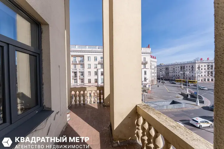 С неё открывается прямой вид на площадь Победы и проспект Независимости — одну из самых красивых и знаковых локаций Минска. Это пространство можно превратить в уютную лаунж-зону, место для завтраков на свежем воздухе или стильную городскую террасу с видом на центр столицы.