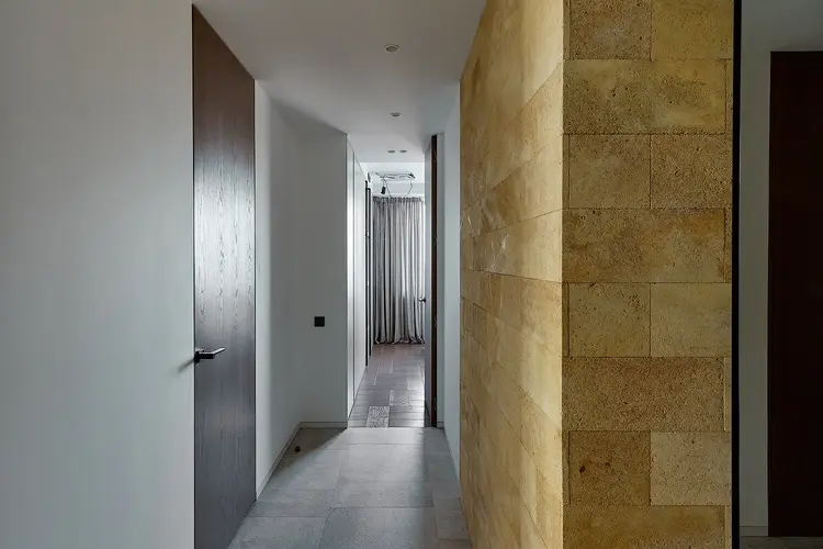 - В отделке стен использован натуральный песчаник, привезённый из Дагестана