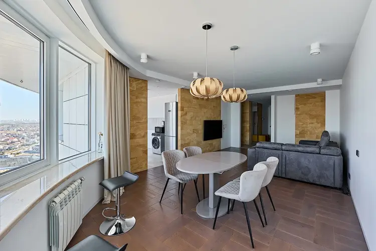 - Кухня с выходом на лоджию с панорамным остеклением