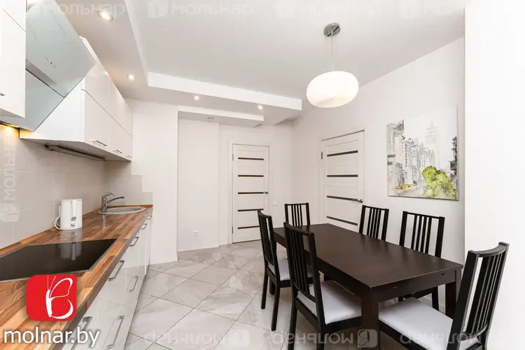 Квартира оборудована всей необходимой мебелью и техникой, все остается. Удобная планировка, два санузла (есть и ванна, и душевая кабинка), оборудованная гардеробная, две застекленные лоджии. Из лоджии шикарный вид на стелу "Минск-Город герой". Полы в квартире- паркет и плитка.