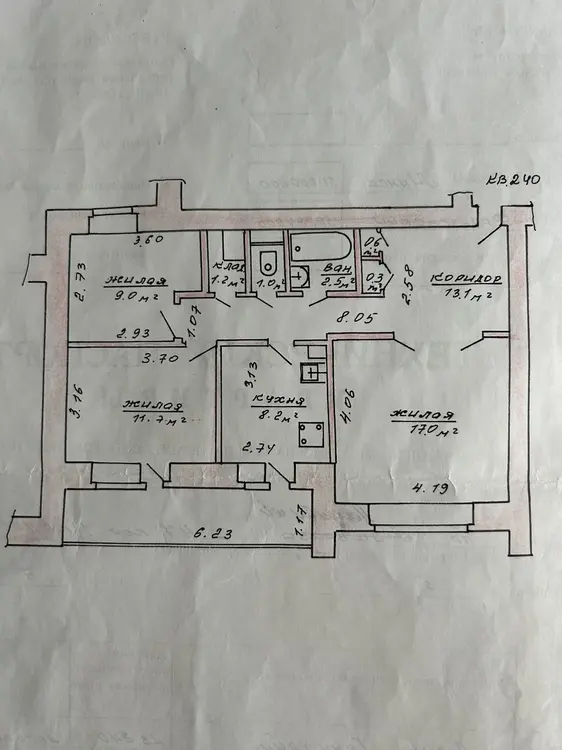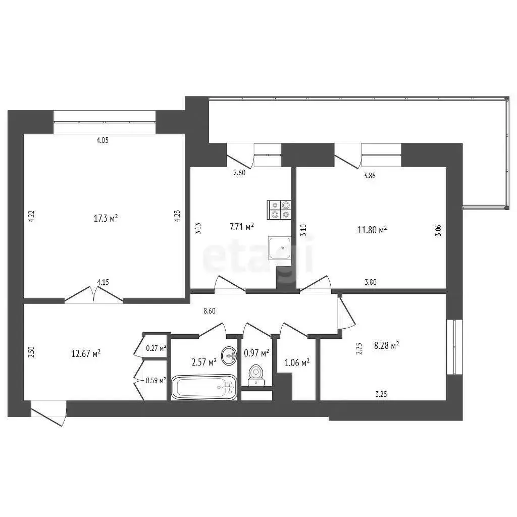 Три раздельные комнаты (17.34 м2, 8.3 м2 и 11.80 м2-с выходом на лоджию)