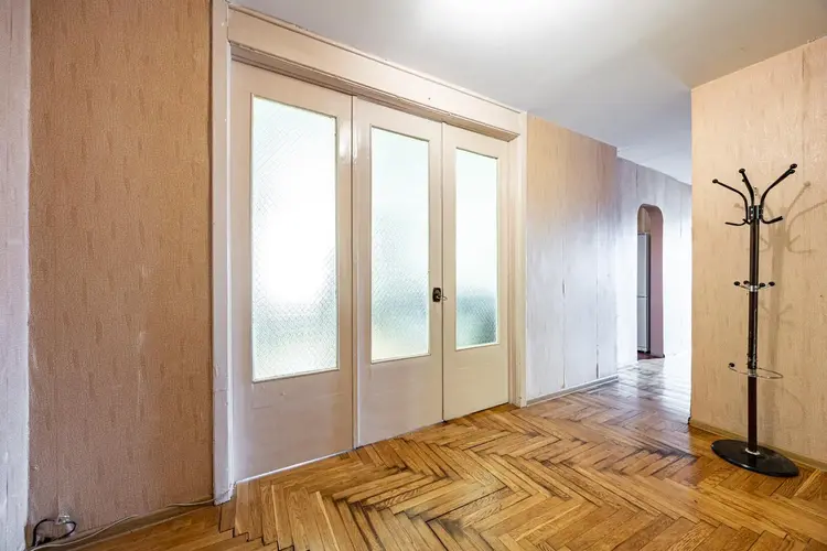 большую прихожую (12.67 м2) и глубокую кладовую комнату.