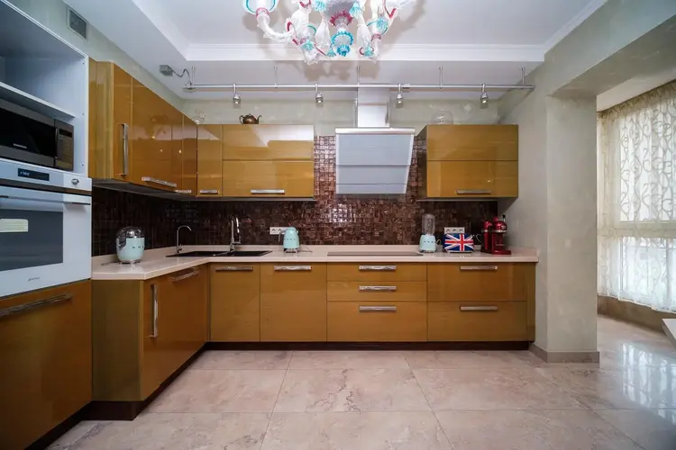 - премиальный кухонный гарнитур, дорогая бытовая техника: варочная панель, духовой шкаф, посудомоечная машина, холодильник, вытяжка, печь СВЧ, а также стиральная и сушильная машины