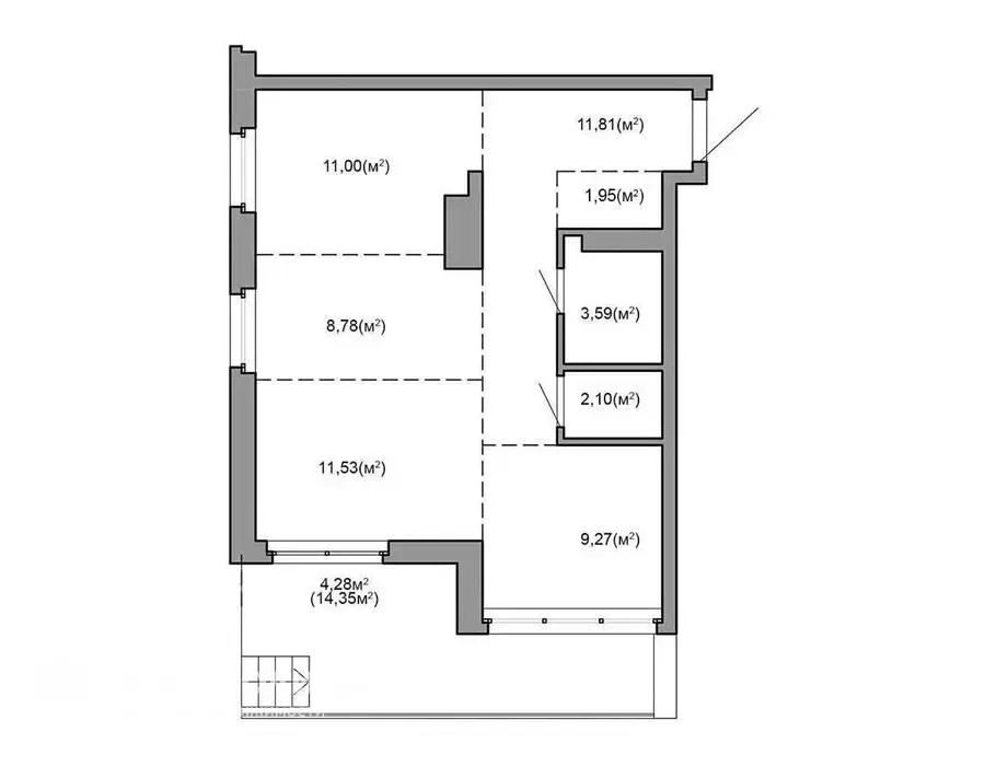 Квартира на момент ввода является однокомнатной с возможностью разделения на комнаты по индивидуальному проекту будущего собственника.
