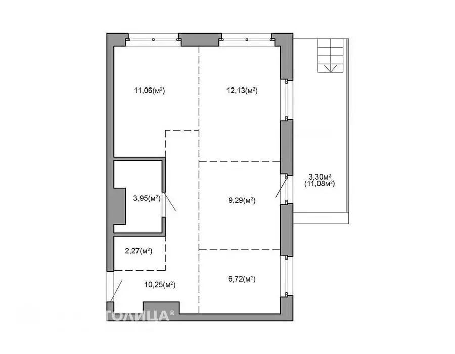 Квартира на момент ввода является однокомнатной с возможностью разделения на комнаты по индивидуальному проекту будущего собственника.