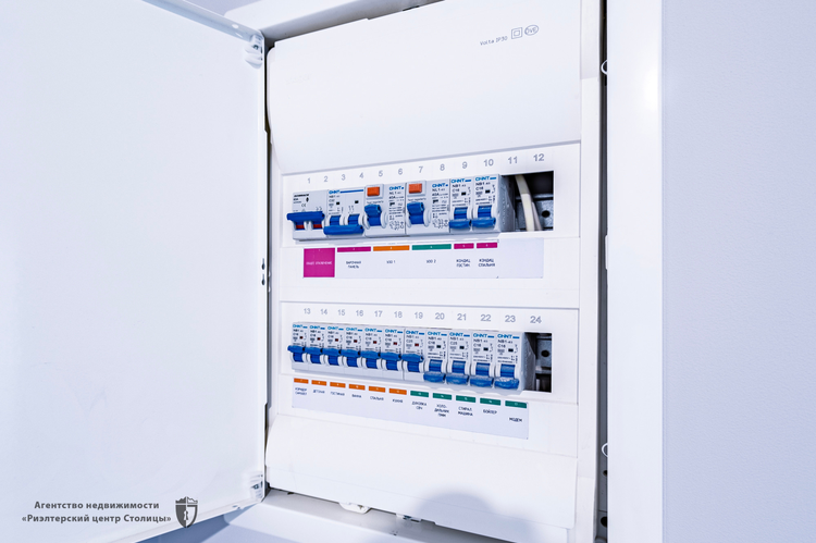 Хозяева продумали всё: сделана разводка под два кондиционера с выводом конденсата в канализацию (никаких вечно капающих трубок на фасад!), выведен аккуратный электрощиток, а зеркальная дверь гардеробной визуально расширяет прихожую и добавляет глубины интерьеру.