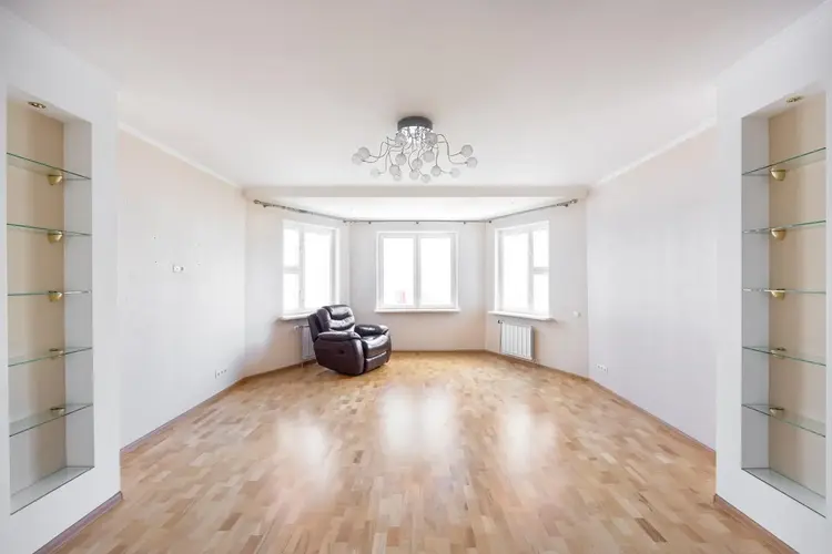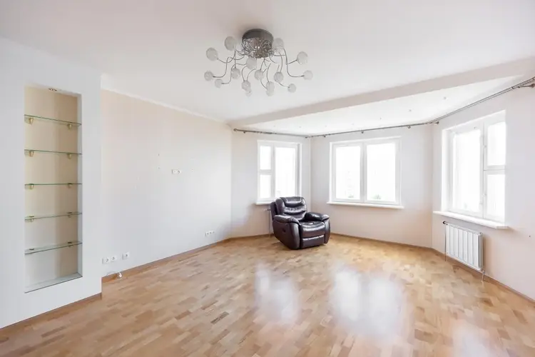 Преимуществом квартиры являются высокие потолки.В отделке использовались высококлассные материалы европейских производителей. На полу в коридоре и зале паркетная доска, в спальне и детской ламинат. В прихожей, на кухне и в санузлах - плитка из керамогранита с системой «теплый пол». Кухня и мебель для спальни и комнат, изготавливались под заказ в Литве. На кухне дополнительно стоят фильтры очистки воды. Все шкафчики с доводчиками. Во всей квартире установлены деревянные дышащие стеклопакеты. Батареи с терморегуляцией (+ счетчик тепла).