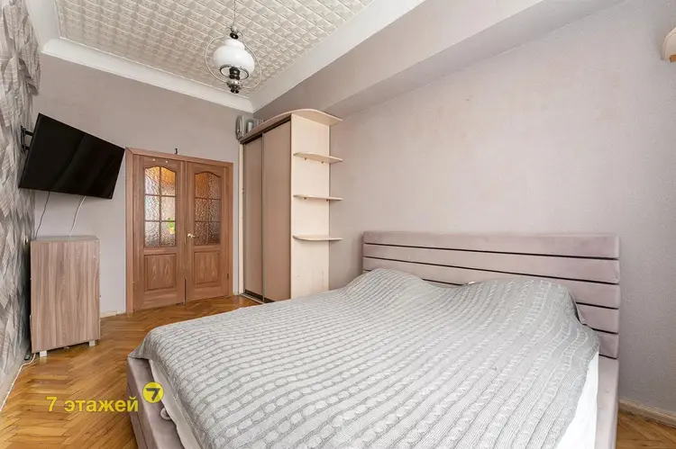 Продается 3-комнатная "сталинка"в историческом центре г. Минска. Квартира аутентичная, просторная, светлая, с большими окнами, выходящими на обе стороны дома, с высокими потолками, хорошо сохранившимся паркетом на полу и невероятно- красивым видом из окон на сквер Я.Купалы.