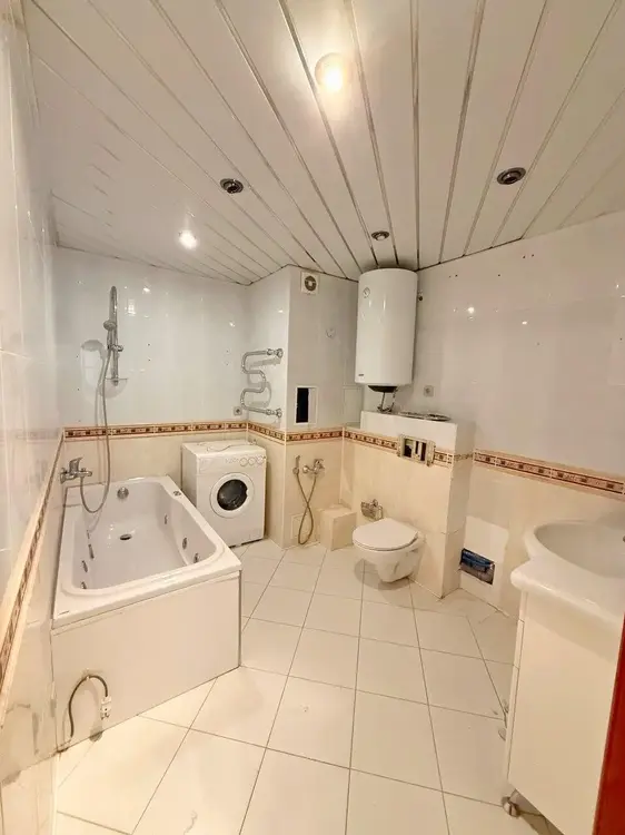 Ванная кухня облицована итальянской плиткой, установлена импортная сантехника и гидромассажная ванна. Накопительный бойлер Ariston всегда обеспечит горячей водой.