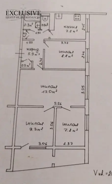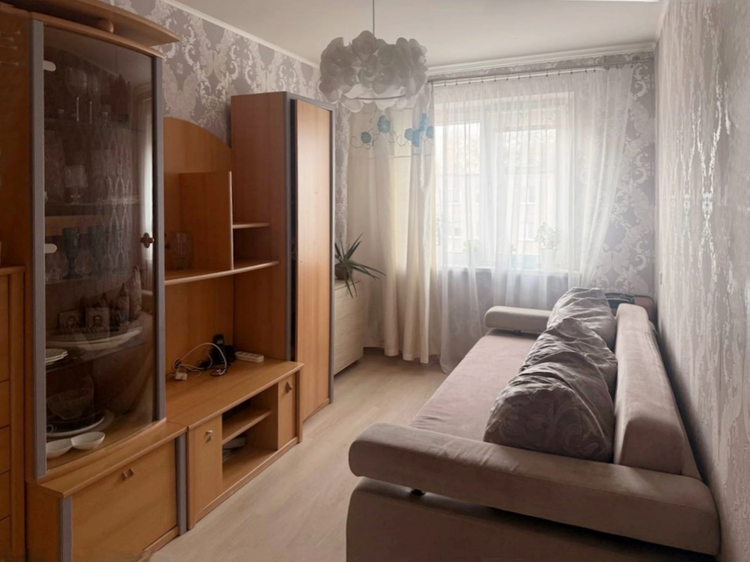 Общая площадь квартиры составляет 61.4м2 (по СНБ 62.2м2). Жилая 45.9м2 состоит из трёх изолированных комнат, выходящих на разные стороны дома. Уютная кухня 6.2м2. Санузел раздельный. Высота потолков 2.51м. Есть застекленный балкон 2.8м2. Квартира расположена на 5 этаже 5 этажного панельного дома (1970 г.)
