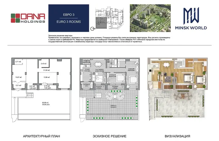 3 комнаты