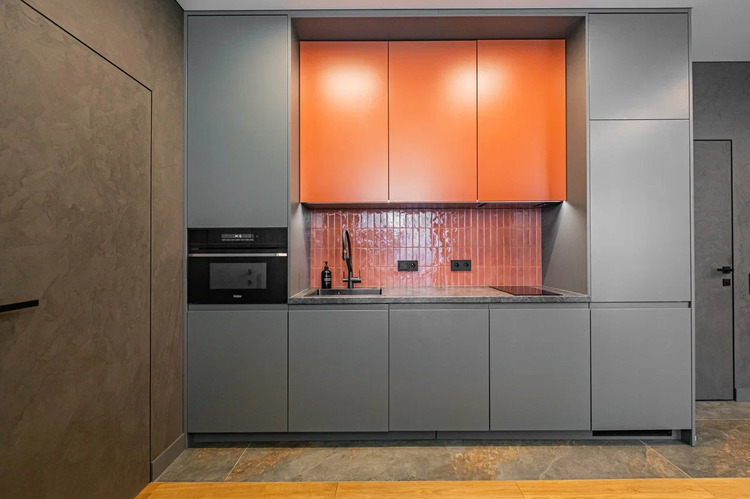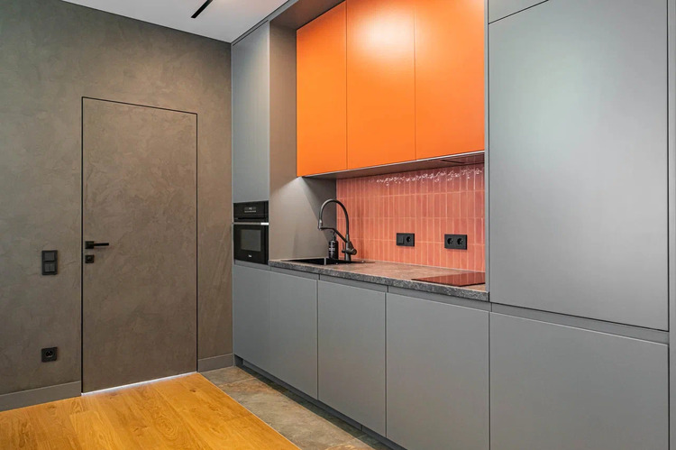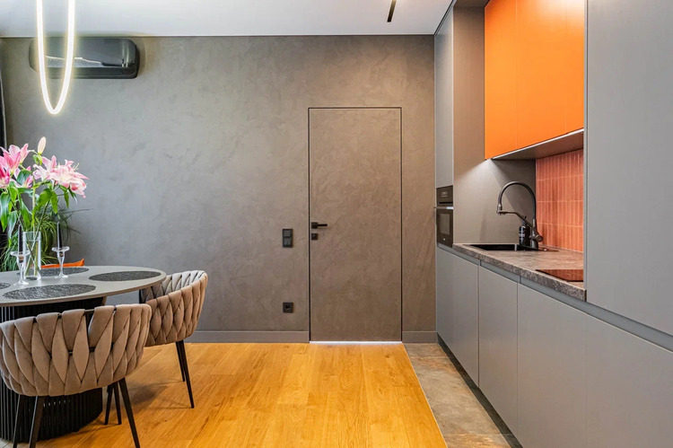 Стены, окрашенные в глубокий графитовый цвет, создают неповторимую атмосферу. Этот элегантный оттенок придает пространству современную строгость, но в то же время окутывает легкой загадкой и уютом.