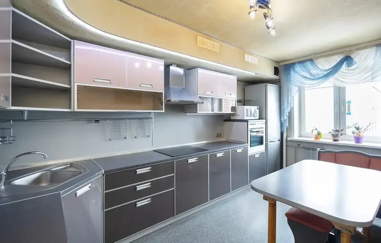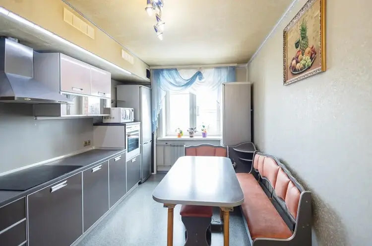 В квартире остается кухня с бытовой техникой, шкафы-купе, секция в зале, иное – по согласованию.