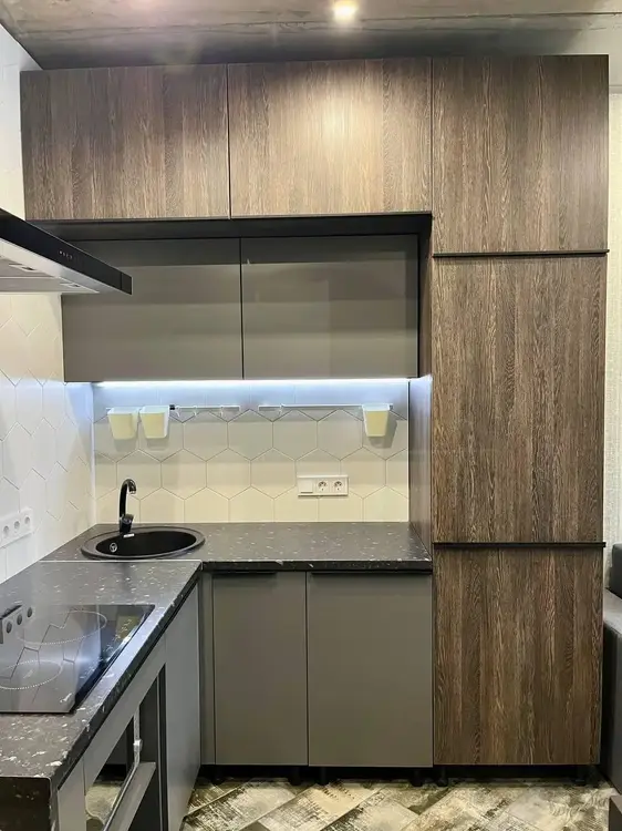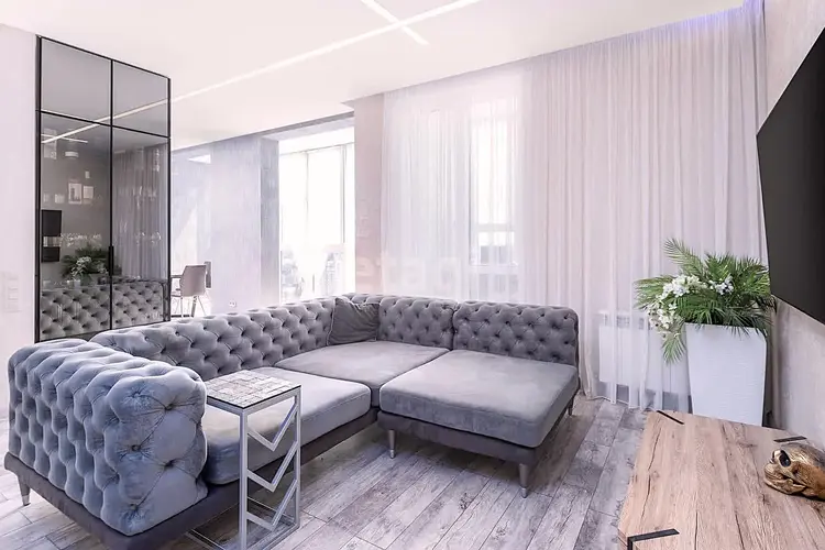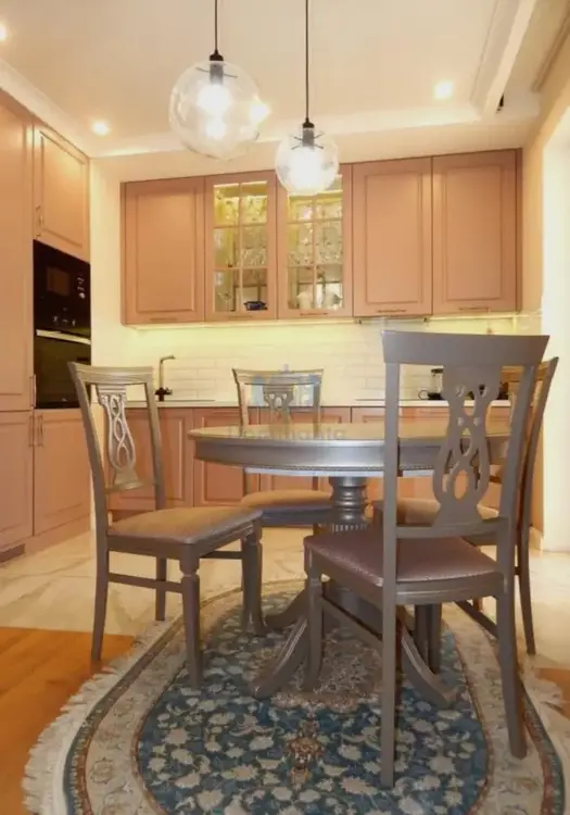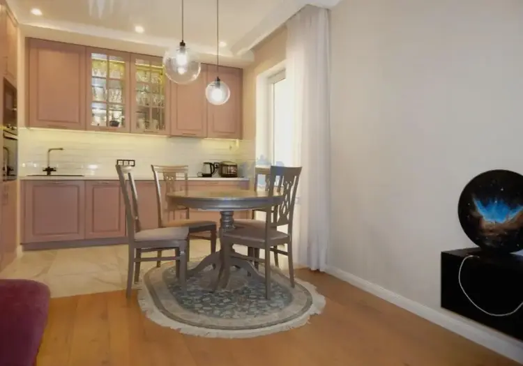 В квартире выполнен качественный ремонт. Встроенная мебель (кухня, шкафы) выполнены на заказ.