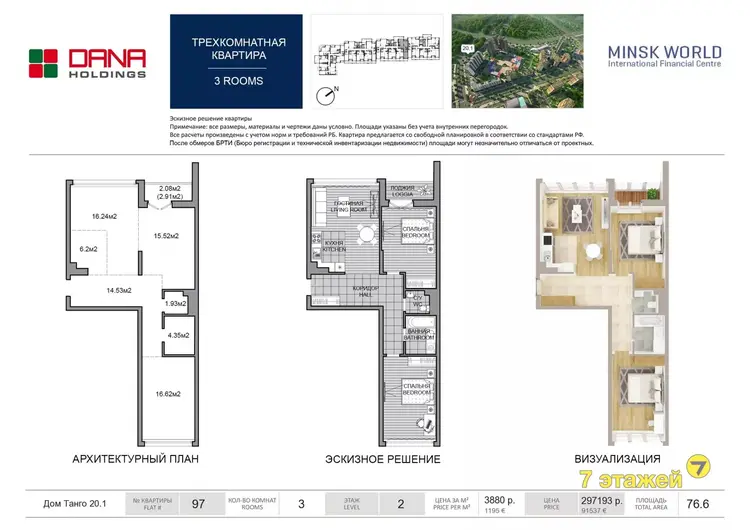 Квартира в новостройке в доме "Танго" по цене застройщика (разработана программа скидок)! Удобная планировка подойдет для семьи с детьми! Архитектурный план позволяет устроить три отдельные комнаты!