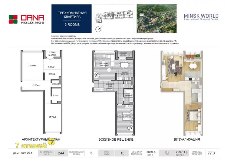 Квартира для молодой семьи на 13 этаже (3 комнаты) в доме с прекрасной локацией – всё рядом! Дом "Танго" в квартале «Мировые танцы» расположен на пересечении улиц Брилевская и Аэродромной, которая является одной из ключевых магистралей города - это даёт возможность автовладельцам быстро добраться до центра города или 10 мин. на любом транспорте! Рядом метро!