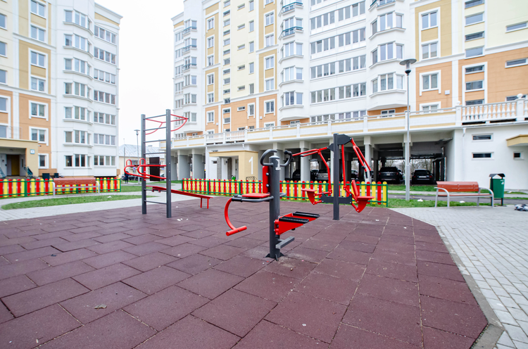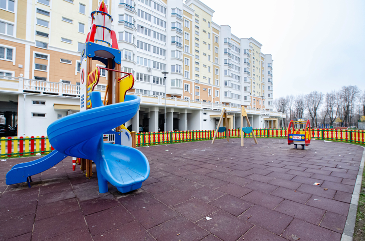 Во дворе - места для парковки, несколько детских площадок. Здесь дети играют, а родители - отдыхают.