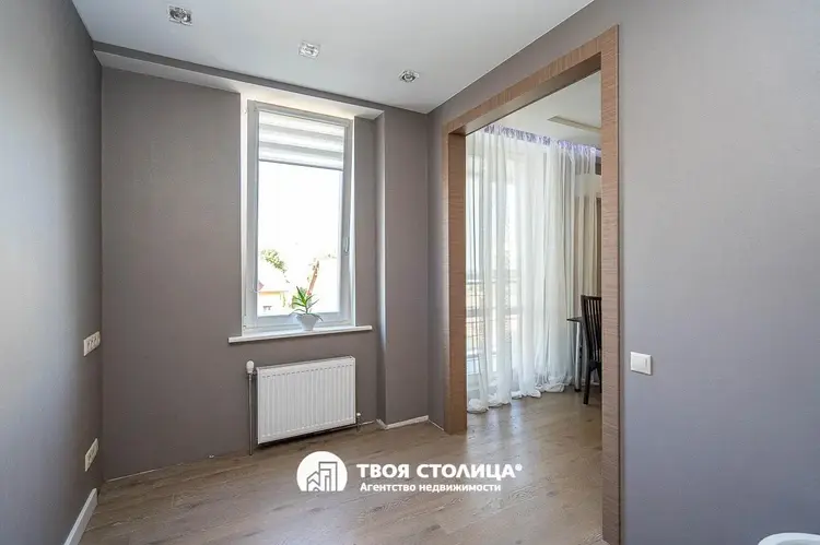 Эксклюзивная 3-комнатная квартира с дизайнерским ремонтом в Центральном районе Минска!Один собственник, после покупки у застройщика. Адрес: ул. Червякова, 55 Дом: монолитно-кирпичный, 2014 года постройки Этаж: 4 из 9, застеклённый балкон Площадь по СНБ: 79.4 м² Общая площадь: 76 м² Жилая площадь: 54.8 м² Высота потолков: 2.7 м Преимущества квартиры:Светлая, тёплая, с качественным ремонтом и рациональной планировкой Перепланировка узаконена Повышенная звукоизоляция Приятная атмосфера и уют Кладовая и гардеробная Кондиционер Отделка и материалы:Полы: паркетная доска дуб Coswick Двери: МДФ, коллекция «Софья» (Италия-Россия) Сантехника: Villeroy & Boch (Италия), умывальник Laufen (Франция) Кафель: Испания Окна: двухкамерные деревянные стеклопакеты (Германия) Инфраструктура и окружение:Закрытая придомовая территория, свободная от машин Велопарковки Возможность покупки парковочного места в подземном паркинге Тихий район с развитой инфраструктурой В шаговой доступности:Комсомольское озеро, парк Победы, Киевский сквер, набережная Свислочи Гипермаркет «Гиппо» Школы, гимназии №34 и №3 Детские сады Минский дворец детей и молодёжи Магазины, банки, почта и многое другое Эта квартира — идеальный вариант для комфортной жизни в центре города.Не упустите шанс стать владельцем этой уютной квартиры в одном из лучших районов Минска!
